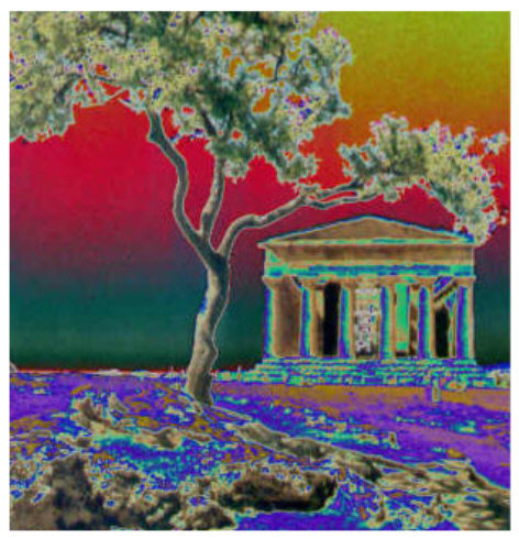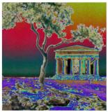 Zur Andacht erhoben: die Kamera - um Schönheit zu bannen, die Zeus so nah. Doch zur unsäglich flirrenden Mittagszeit wird dies nicht gelingen in diesem Sinne. Also, Färber des Lichtes - was bleibt ihr verborgen! Seid ihr verbrannt in der Glut dieser Stunden? Oder steht ihr als brennende Fackel bereit, wenn die Sonne versinkt in Dämmrigkeit? Das wäre die bessere Aufnahmezeit! Ja, dann bringt der Färber das leuchtende Rot, gießt es über Firste, Säulen und Stufen. Ein andrer mischt zartes Gelb hinzu - welch zeusgefälliger, kunstvoller Vorgang! Zum Abschied fällt purpurn der himmlische Vorhang.